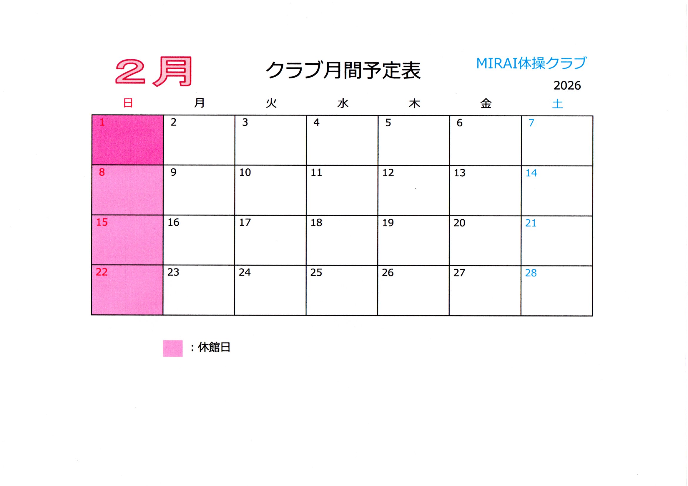 クラブ月間予定 2026